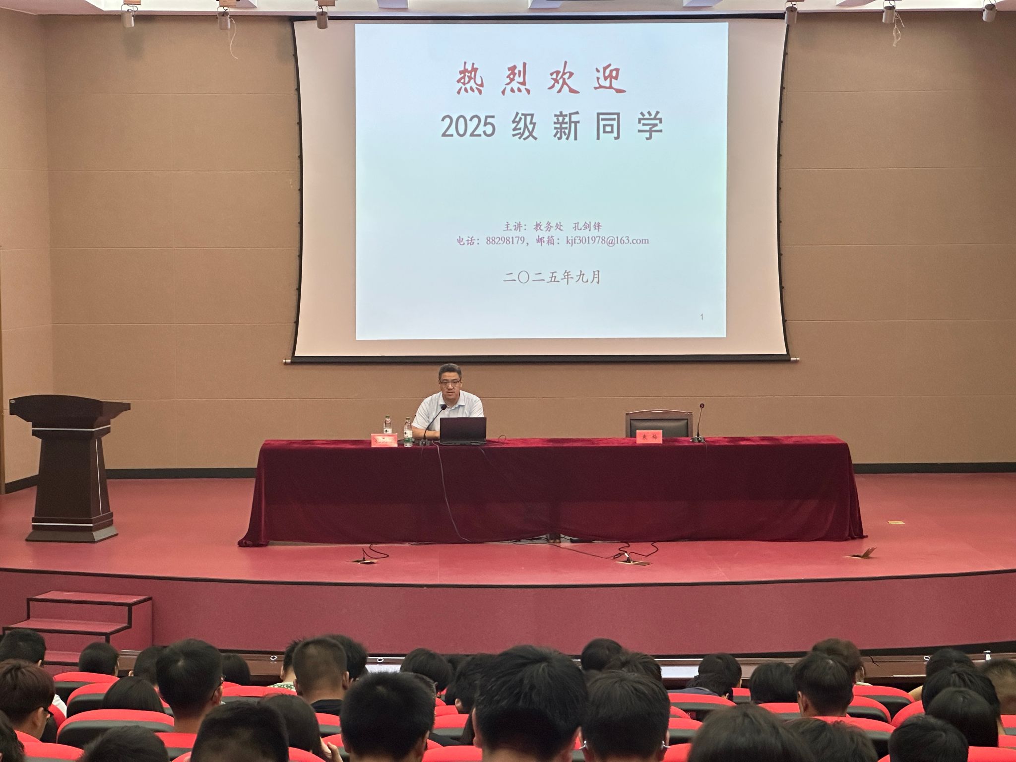 孔剑锋从课程考试与成绩记载、休学与复学、退学及毕业四个方面着手开展学籍管理教育,讲解了课程学习和选课注意事项、学士学位授予办法、学业预警管理办法和考试违规处理办法,解答了新生同学大学学习很容易遇到的困惑问题。他通过大学生考试作弊成本核算,清晰展示了考试作弊的严重后果,引起同学们的高度重视。他希望同学们要勤奋学习、善于学习、管理好自己,以良好的精神风貌、严谨的学习态度,锐意进取,努力实现人生目标。