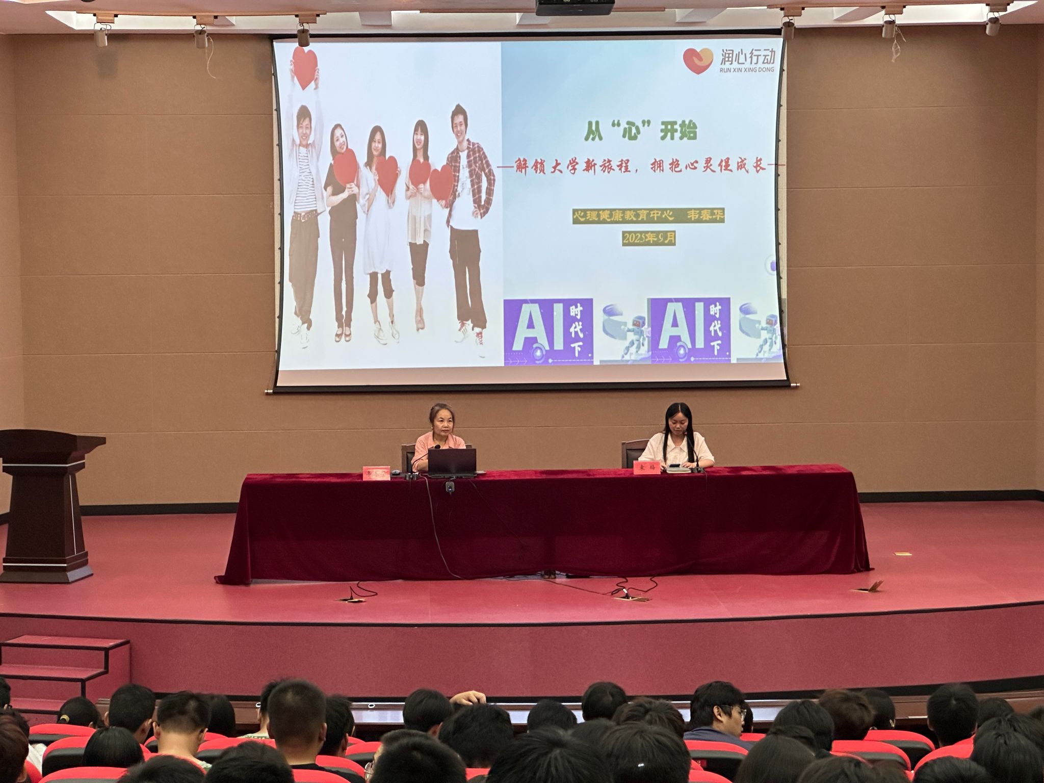 为促进我院2025级本科新生更好地适应大学生活,合理规划学业发展,提升大学生心理健康意识,营造良好校园氛围, 9月12日晚在盐城工学院北校区五四报告厅,学院联合教务处和“一站式”学生社区开展2025级新生“大学第一课”系列教育讲座。教务处副处长孔剑锋和学生处心理健康中心韦春华副教授主讲,学院党委副书记温崇明出席,新生辅导员和全体2025级本科新生参加会议,讲座由学院团委副书记袁梅主持。