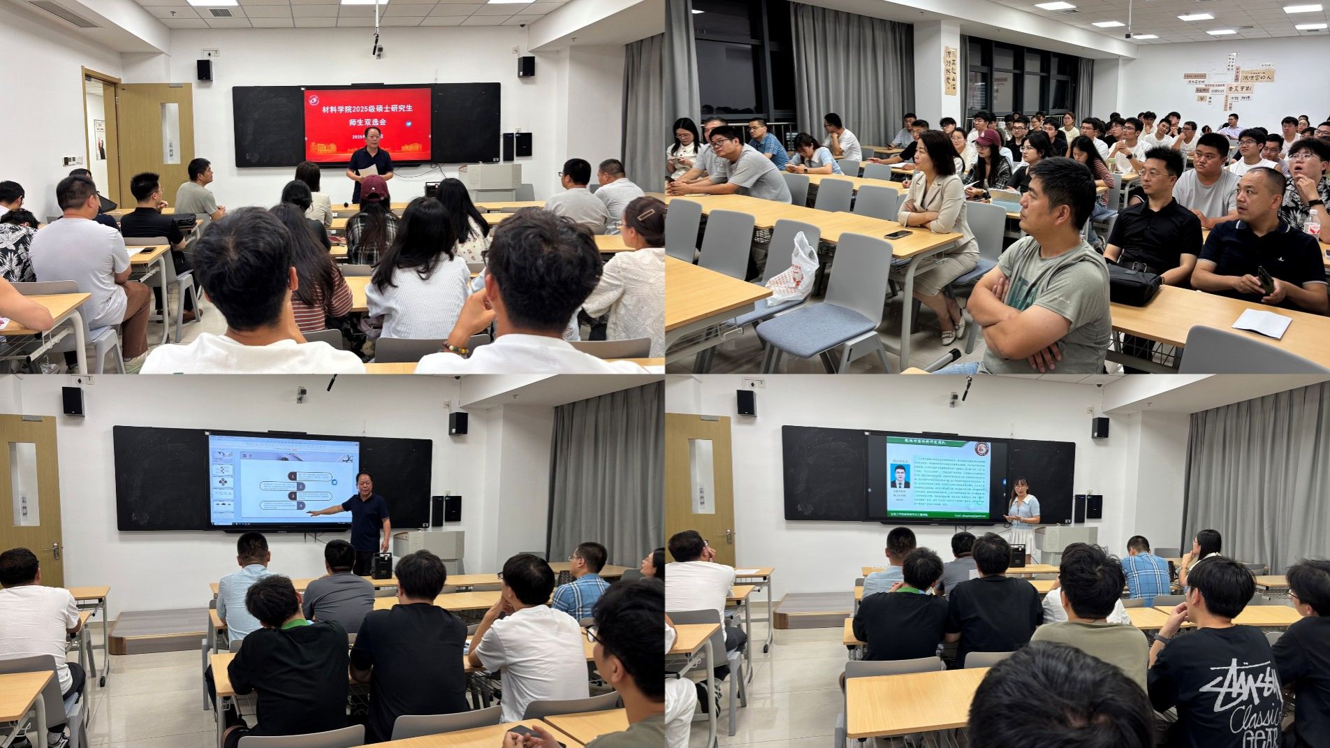随后,参会导师依次上台,结合自身研究方向,全面介绍团队科研平台、近年研究成果及2025级招生计划,让研究生清晰了解各导师及团队的科研特色与发展方向。双选会现场交流环节,研究生围绕“三年科研规划、课题方向匹配、学术资源支持”等核心问题与导师深入沟通。导师则针对研究生的学术兴趣、专业基础给出个性化建议,双向互动高效务实。