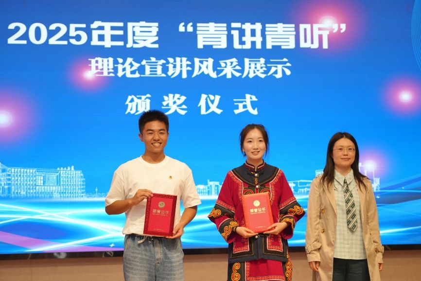 10月19日下午,2025年度“青讲青听”理论宣讲风采展示活动在希望大道校区机械馆楼报告厅隆重举行。校党委常委、宣传部部长奚新国,党委学工部、学生处、招生与就业创业指导处处长杨汉华,马克思主义学院党总支书记、常务副院长胡凌霞,校团委书记杨秀丽,马克思主义学院社会实践教研部主任孙莉出席活动。各二级学院师生代表、校融媒体中心学生代表等近200人参加活动。