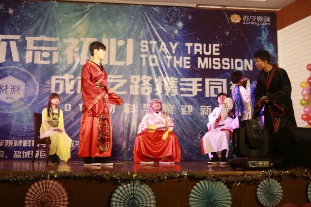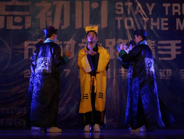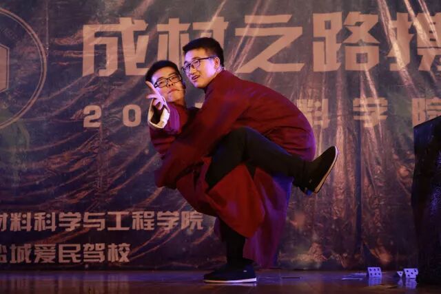 张舒山、薛莱等人带来情景剧《黄河大合唱》台下材子都被紧张的剧情深深吸引,投入于剧中,演员们的一举一动都牵动材子们的神经。合唱与表演的完美融合,幽默中不失奋进,诙谐中不失激昂。